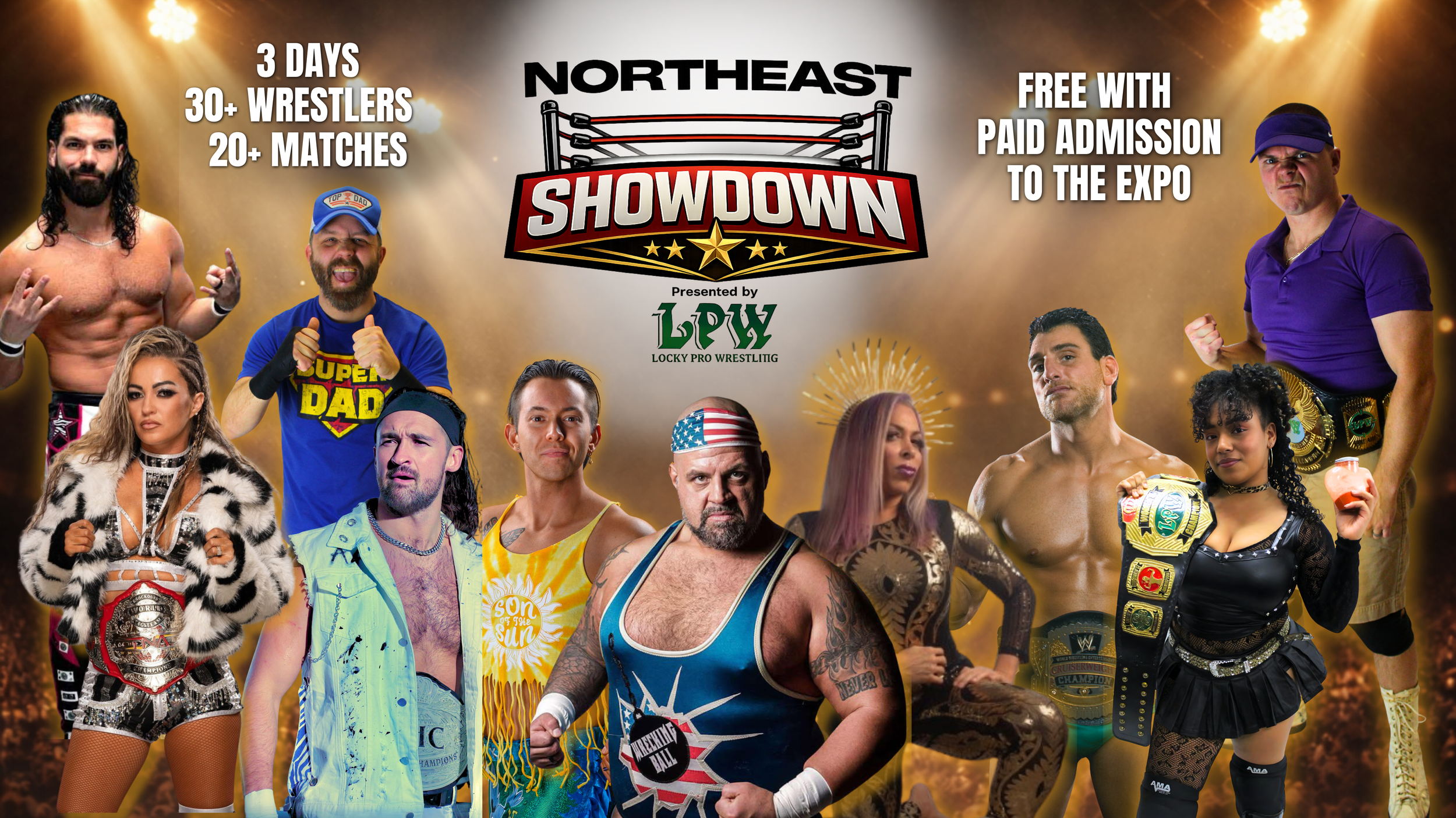 A first for a card show, the Northeast Showdown presented by Lucky Pro Wrestling is a three-day live wrestling event featuring 20+ matches and 30+ wrestlers, taking place alongside the Northeast Sports Card Expo in Marlborough, MA.